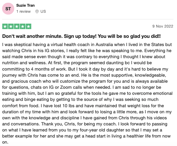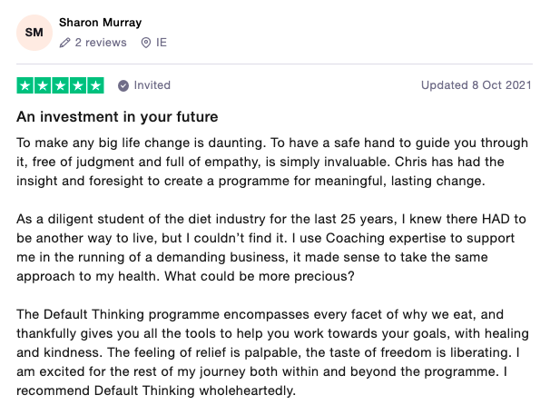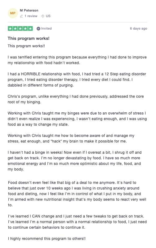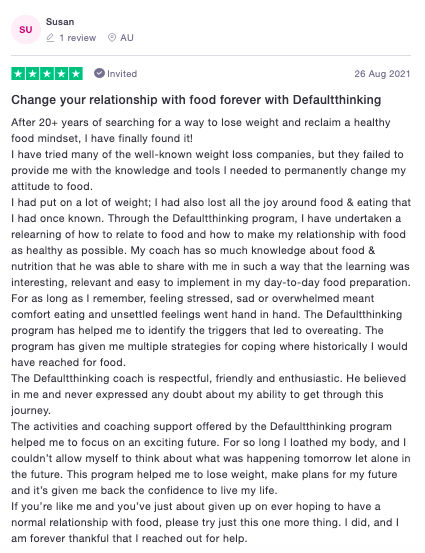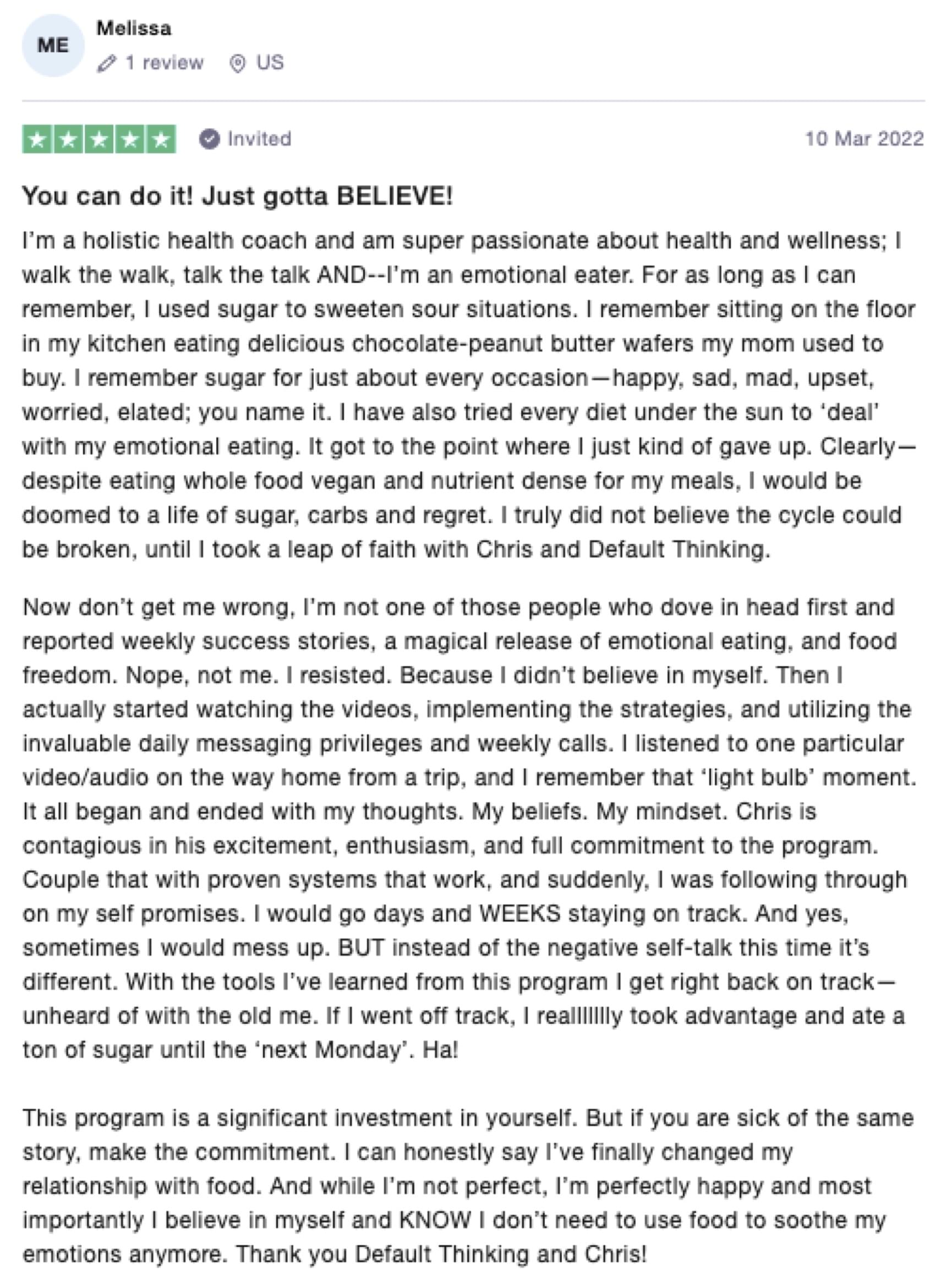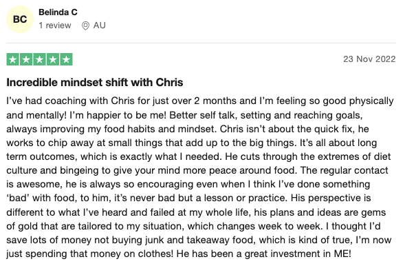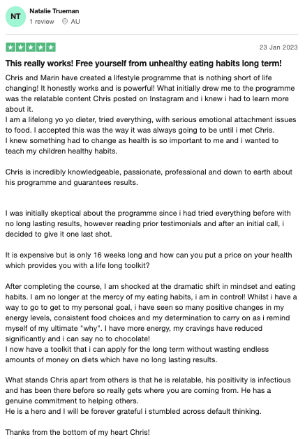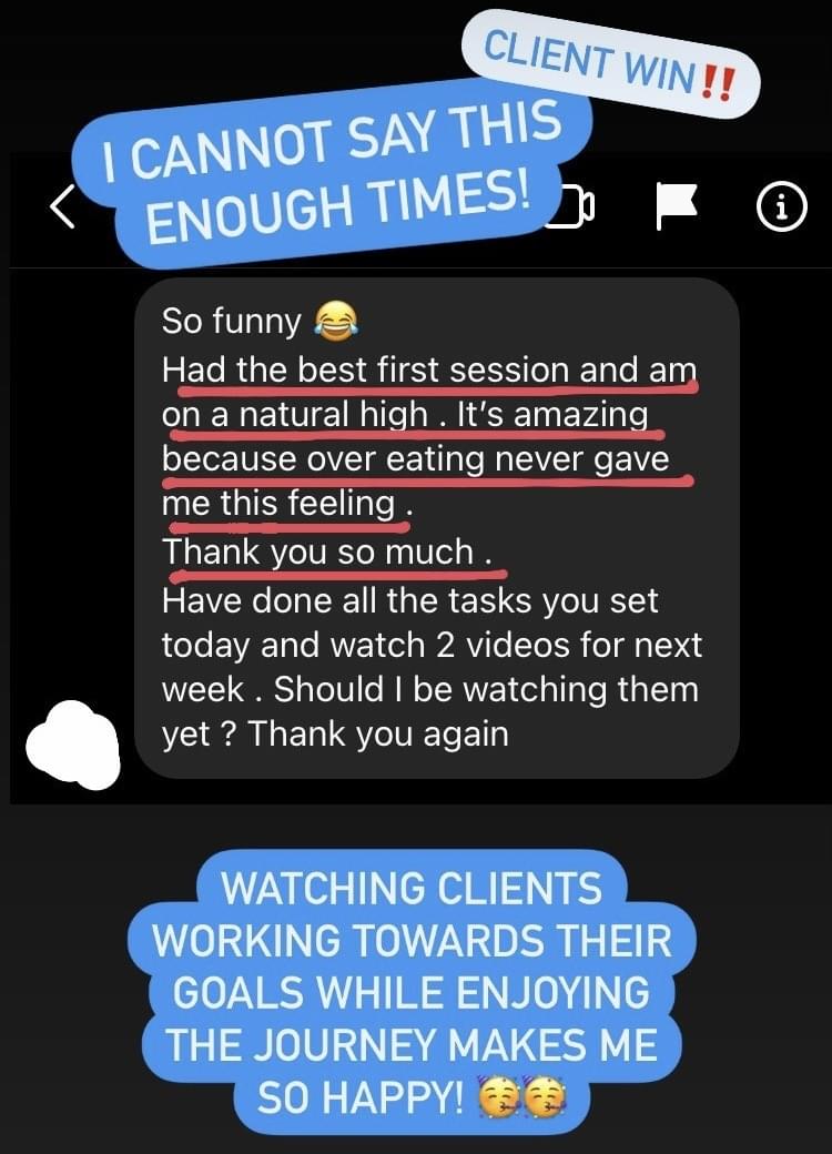 I got to the ROOT CAUSE of my eating, I prioritised my health, I took ACTION and worked on the emotional drivers behind my eating. With 100% CONTROL over my eating I am finally free from the Binge / Restrict / Shame & Regret cycle that was my story for so long and I am now happier, healthier, more successful and more fulfilled! 🥳